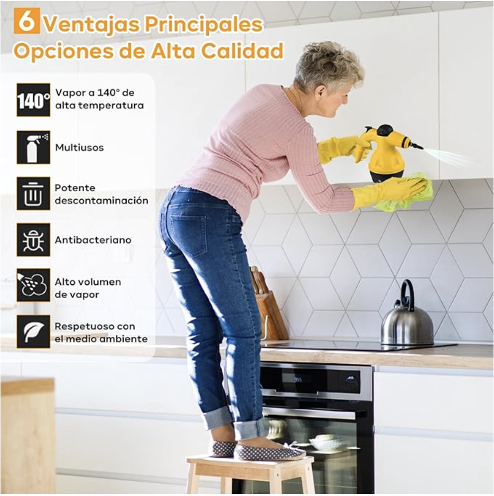 Este dispositivo es un limpiador a vapor de mano portátil diseñado para una limpieza e higienización profunda y versátil en múltiples superficies del hogar y otros espacios. Utiliza agua calentada a alta temperatura y presión para generar vapor, desprendiendo eficazmente la suciedad y eliminando gérmenes sin la necesidad de productos químicos agresivos.