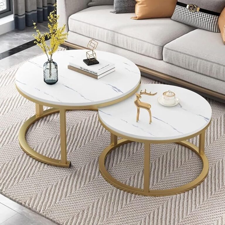Este elegante set de mesas de centro redondas combina diseño moderno y funcionalidad para transformar cualquier sala. Su superficie de extructura tipo marmol aporta un estilo sofisticado, mientras que la estructura metálica en tono oro mate ofrece resistencia, estabilidad y un toque lujoso.