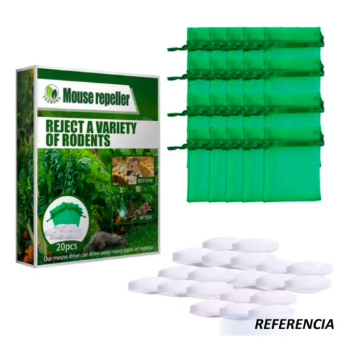 Repelente de ratones 20pcs nuestro repelente de ratones está hecho de aceites esenciales naturales: aceite de menta, aceite de limón, aceite de romero y aceite de clavo. Emite un olor que hace que los roedores se sientan incómodos y los obliga a mantenerse alejados de los ratones